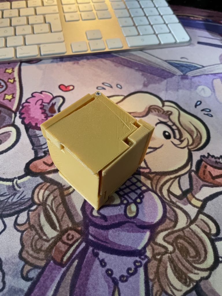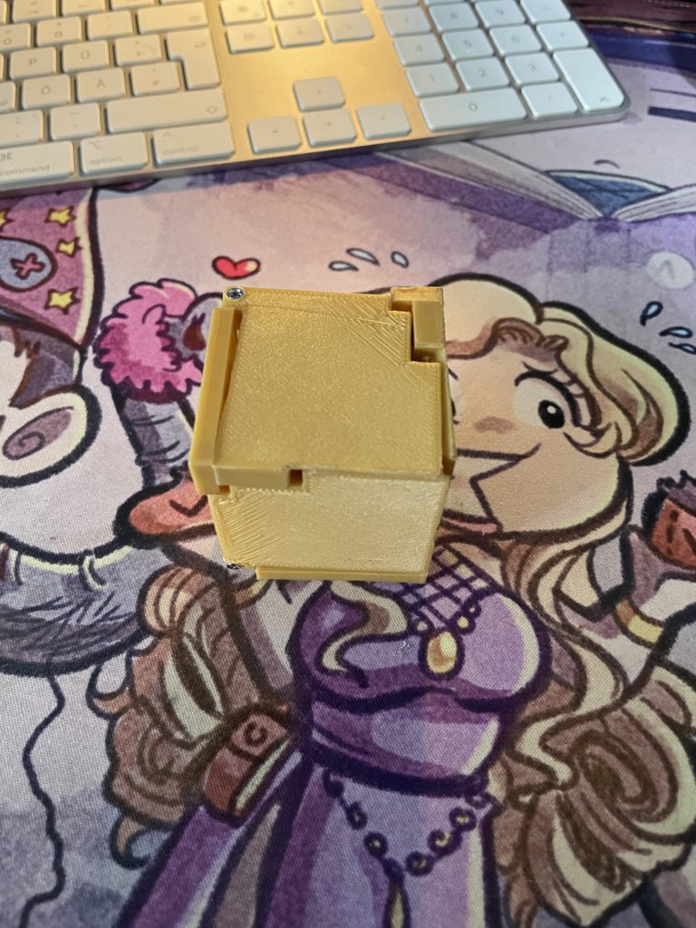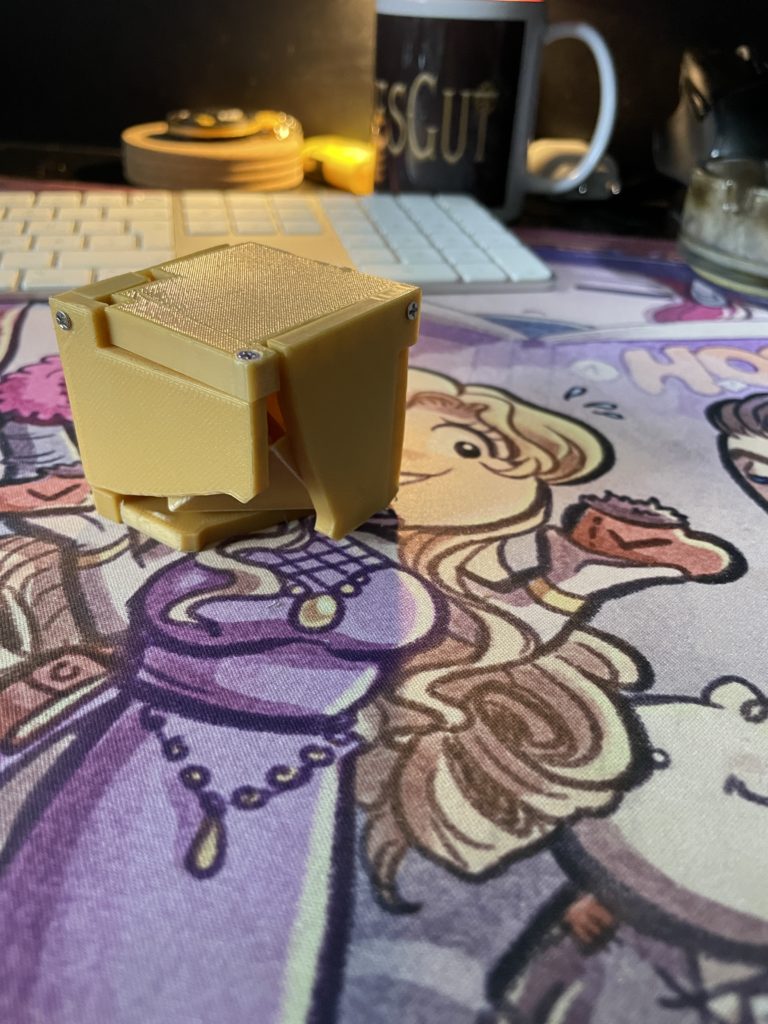 Hier seht Ihr einmal die erste Box welche als Prototyp und Testbox in PLA Gold gedruckt wurde.