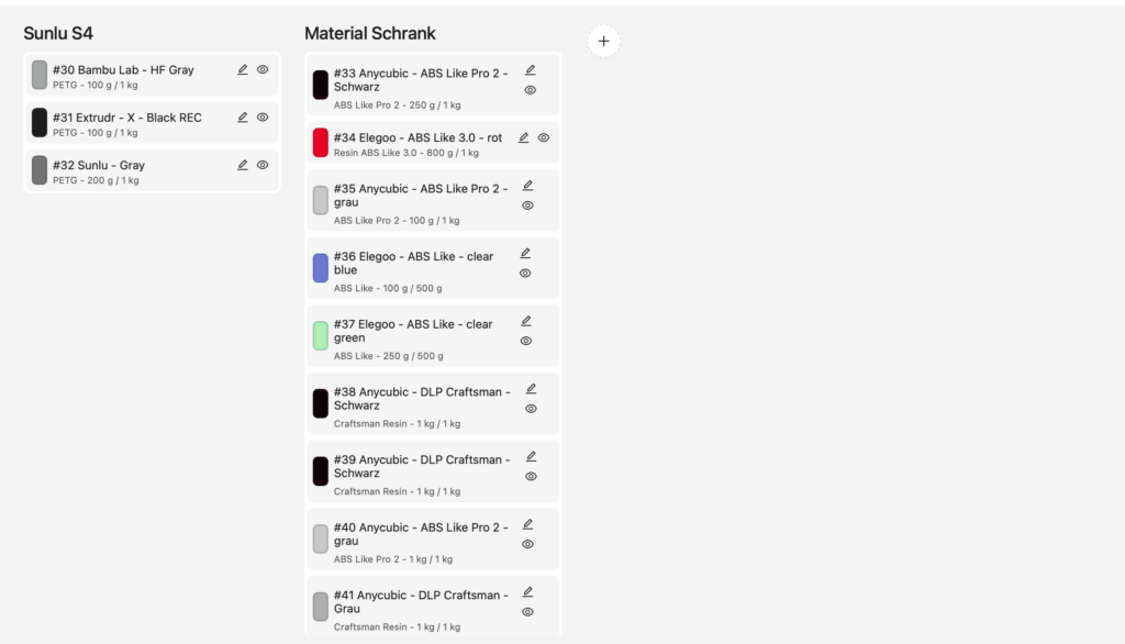 Nun aber das für mich am coolsten Feature. Ich kann unter Orte direkt sehen welche Filamente oder Resine in welcher Location sind: