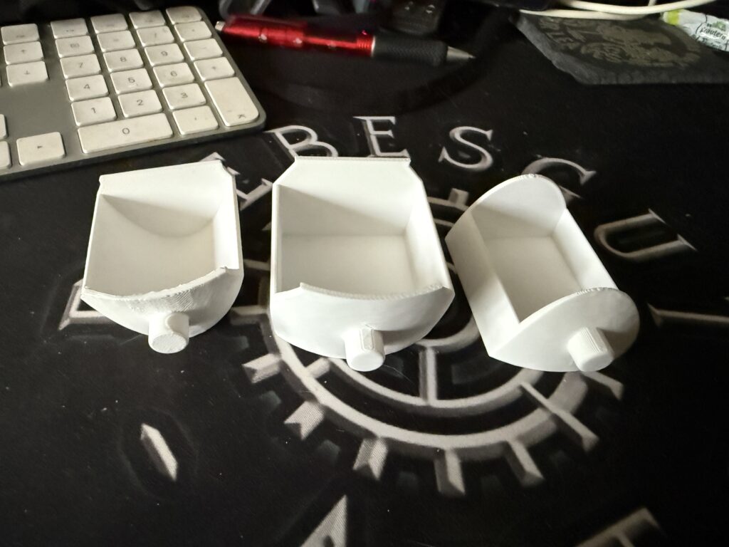 Nachdem diese dann alle erfolgreich waren und der Extruder mit dem gleichen Filament auch keine Geräusche mehr machte ging es dann erneut an den Druck des Korpus. Nun werden sich einige Fragen aber Levi was war da denn nun los? Leute ich habe keine Ahnung denke aber entweder stimmt was mit dem Filament an sich nicht oder mit dem AMS Slot beides werde ich am kommenden Tage mal ausprobieren. In den anderen 3 AMS Slots gab es die entsprechenden Probleme nicht. Ich habe mich dann auch dazu entschieden den Korpus in burnt titanium zu drucken und so das Modell in zwei Farben zu fertigen.