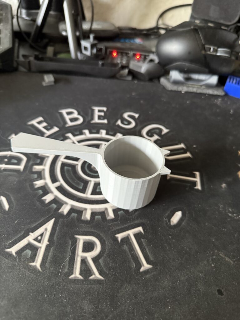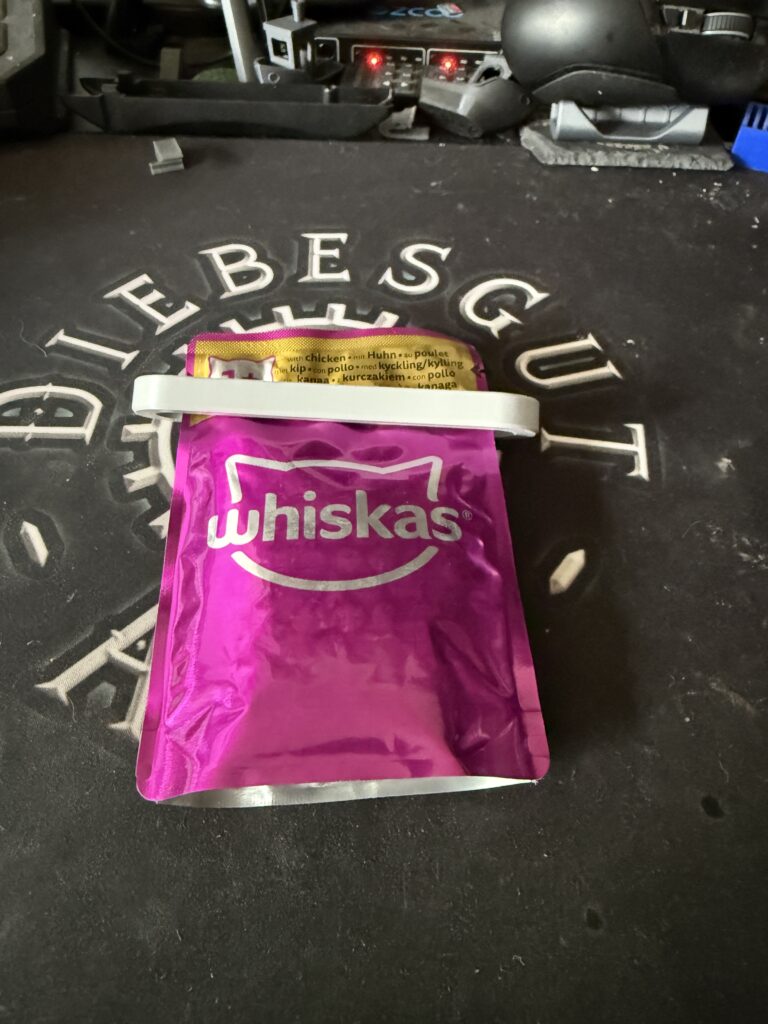 Also was wollte ich denn nun haben? Als erstes eine Box für die Nassfutter Tüten und direkt danach habe ich ein Tool gefunden um diese Tüten dann auch auszuquetschen ohne jedesmal die halbe Tüten an den Fingern zu haben. Auch für das Trockenfutter habe ich da was gefunden, einen Portionierlöfel für das Trockenfutter. Diesen hatte ich schon vorbereitet und Ihn direkt wieder verworfen da ich immer noch die Meinung vertrete das Gedruckte Teile nicht mit Lebensmittel in Kontakt kommen sollten. Mit verworfen heißt in diesem Fall aber nicht, dass ich diesen nicht gedruckt habe sondern nur, dass er nicht seiner eigentlichen Nutzung zu geführt wird sondern als Dekoelement benutzt wird.