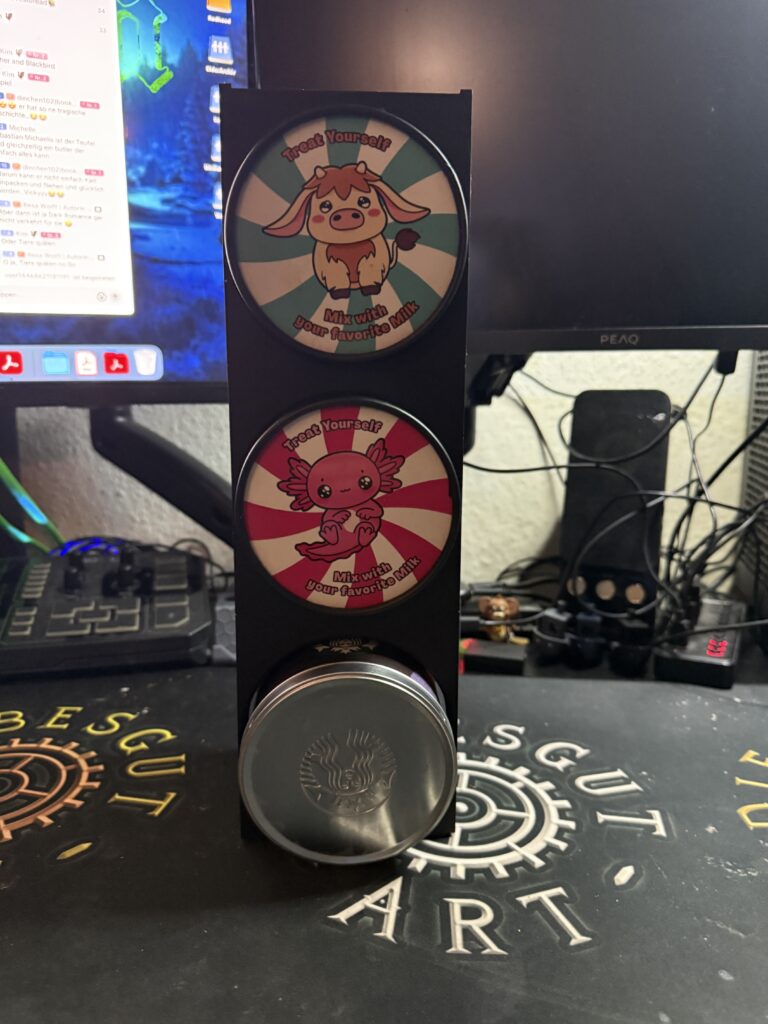 Auf der Suche nach noch mehr Organizer auf Printables habe ich mal wieder was gefunden. Natürlich gibt es viele verschiedene Arten sein Getränkepulver zu organisieren, jedoch gefiel mir dieses Modell sehr gut da die Druckzeit akzeptabel ist und es modular erweitert werden kann.