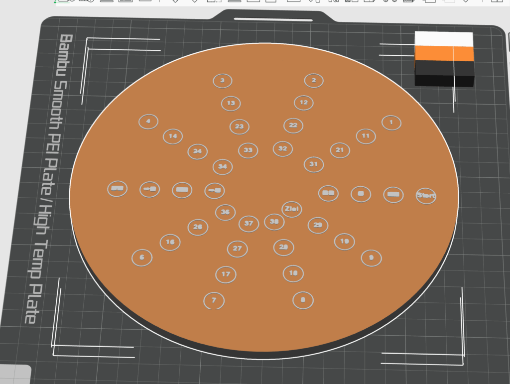 Größe und Form werden auch in der finalen Version beibehalten werden. Hier sind die Spielfelder noch erhöht. Geplant ist dies alles in einer Ebene zu haben und natürlich werden ich die Zahlen udn Symbole noch entsprechend nachzeichnen damit diese auch gut sichtbar und druckbar sind.