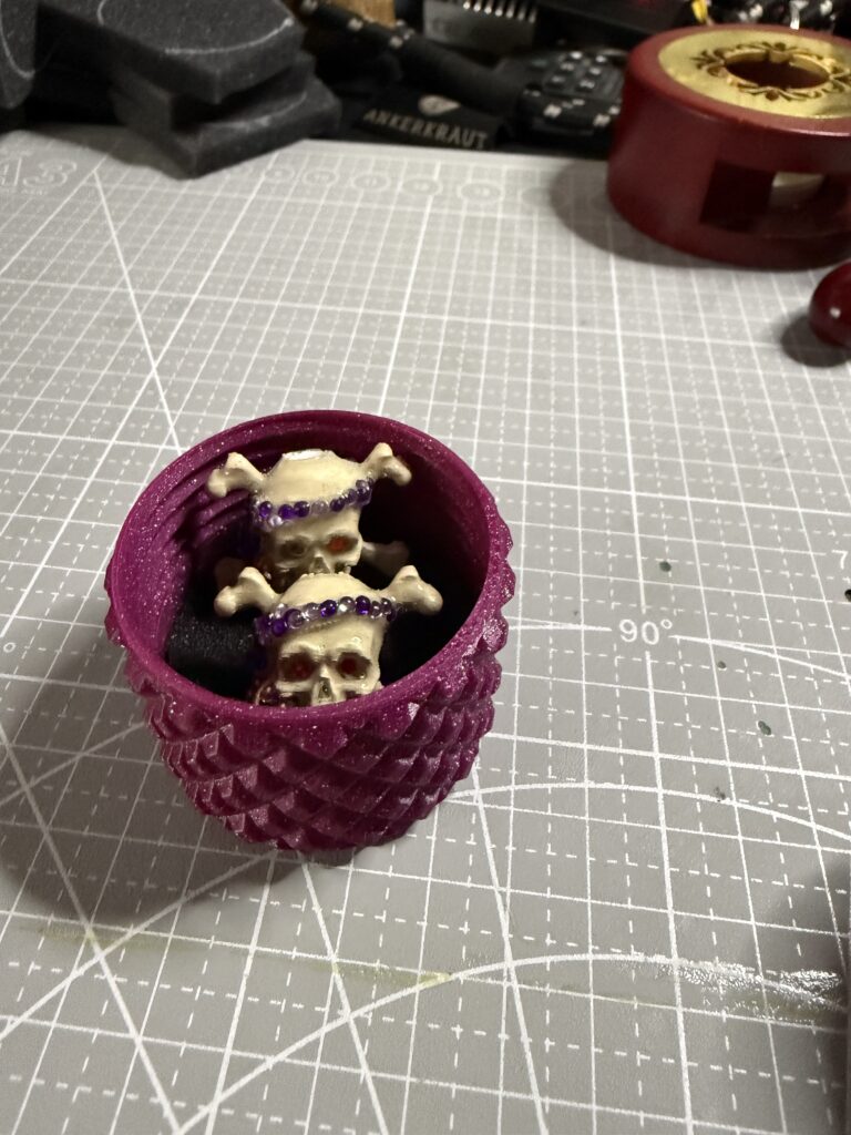 Die Schädel waren son typische Projekt für Freunde die bei mir zu Hause life entdecken was doch so alles möglich ist. Zu erst sollte es nur für den Herrn sein aber nach dem ich Fotos geschickt habe wollte die entsprechende Dame auch einen haben. Dies spiegelt sehr gut wieder wie Drucke für Freunde bei mir aufschlagen und ich diese dann in einem DGA Projekt fertige.