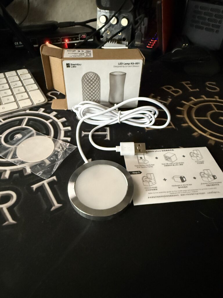 Für die Beleuchtung habe ich die für wirklich viele gute Lampenprojekte verwendete LED Einheit von Bambulab verwendet. Das folgender Bild ist von der Bambulab Seite. Wichtig ich konnte auf der Webseite nur noch Links mit entsprechend dazu passenden Druckmodellen finden, weshalb ich diese hier nicht verlinke. Die LED Einheit wird daher mit entsprechenden Modellen angezeigt da es verschiedene, fast identisch aussehende Modelle gibt. Verkauft wird hier dann zwar nur die LED Einheit und die gezeigten 3D Files sind nicht inklusive, dies wird in meinen Augen nicht direkt ersichtlich. Hinzu kommt, dass die Einheit aktuell eh ausverkauft ist.