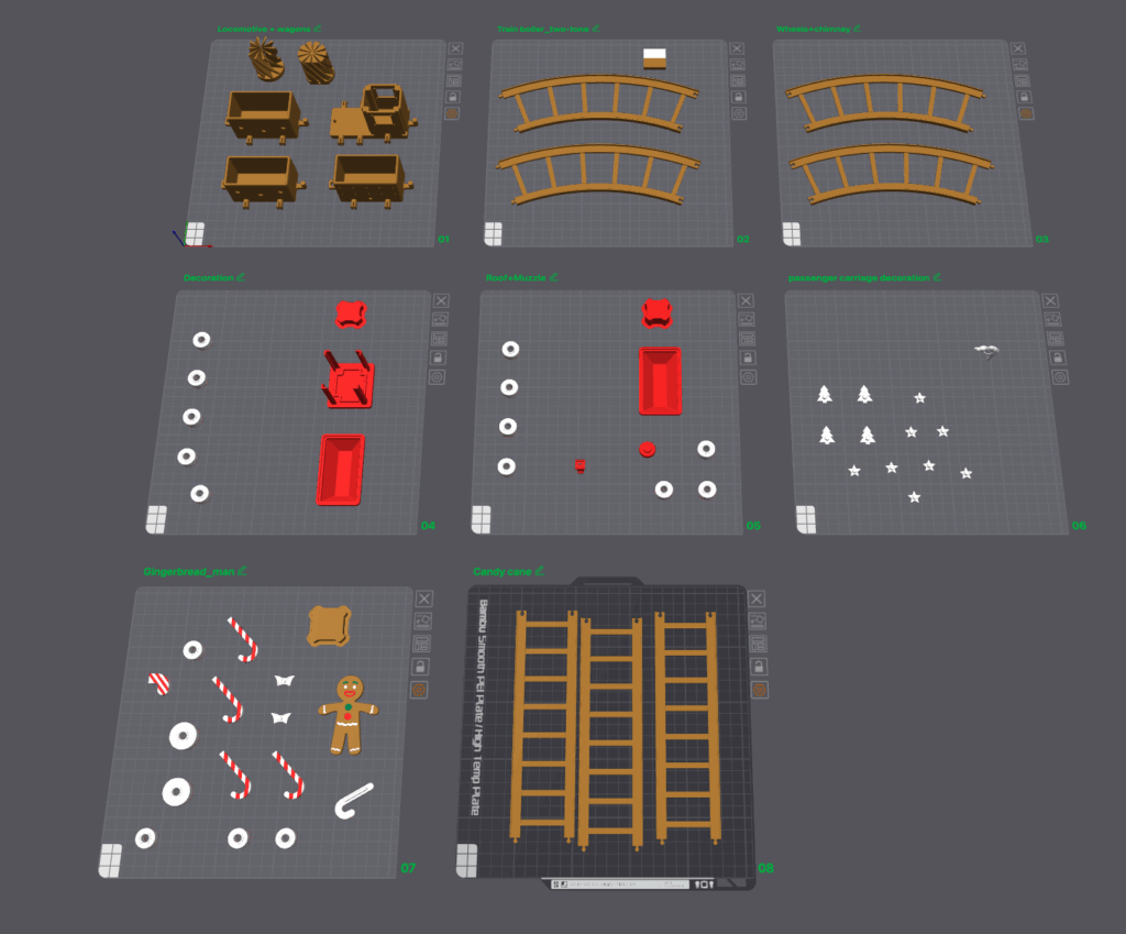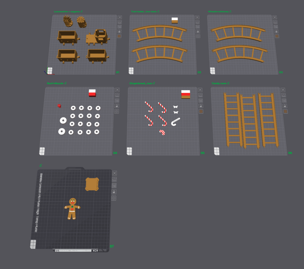 Nun ist bereits der nächste Tag und die Drucker laufen wieder. auf dem A1Mini werden die weißen Fenster gedruckt und auf dem P1S die ersten Zugteile. Auch habe ich die P1S Projektdatei nochmal überarbeitete und weitere einfarbige weiße Drucke auf den A1 Mini gelegt.