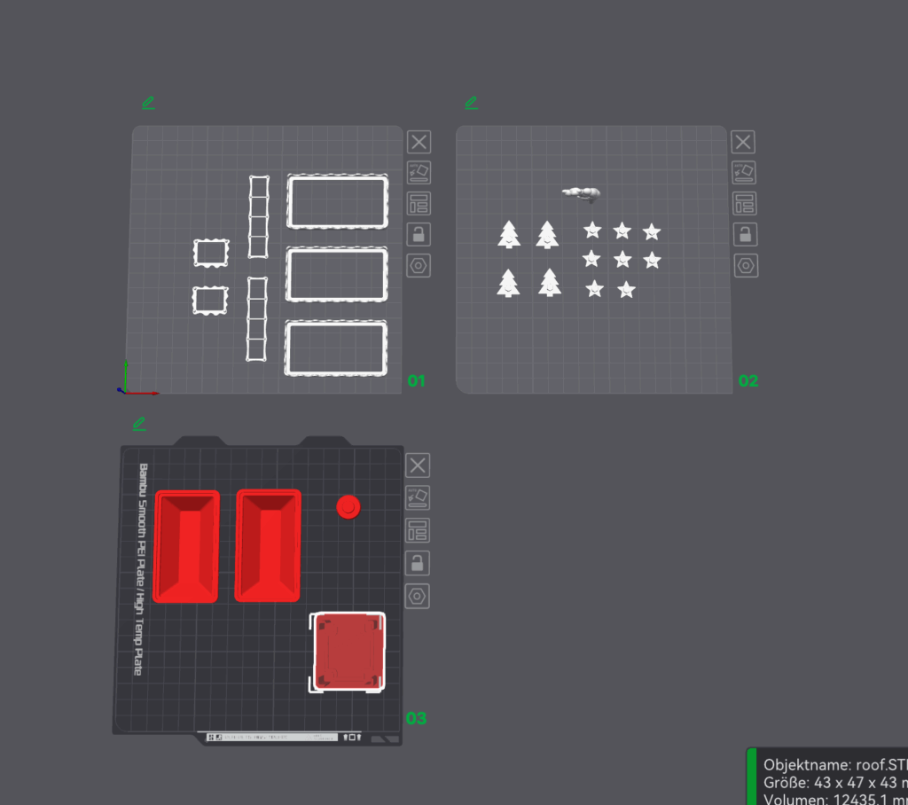 Die aktuelle Planung sieht wie folgt aus links P1S und rechts A1Mini. Die Druckdateien sind aber derzeit noch nicht final sondern dienen eher der Berechnung der Materialwerte.