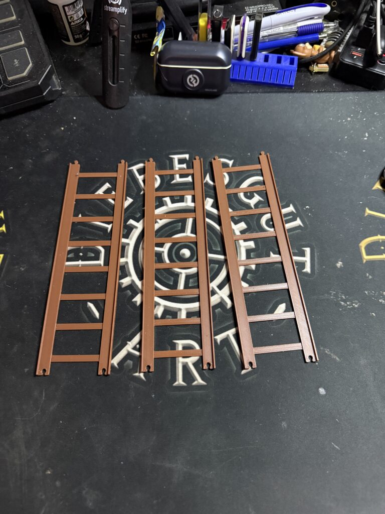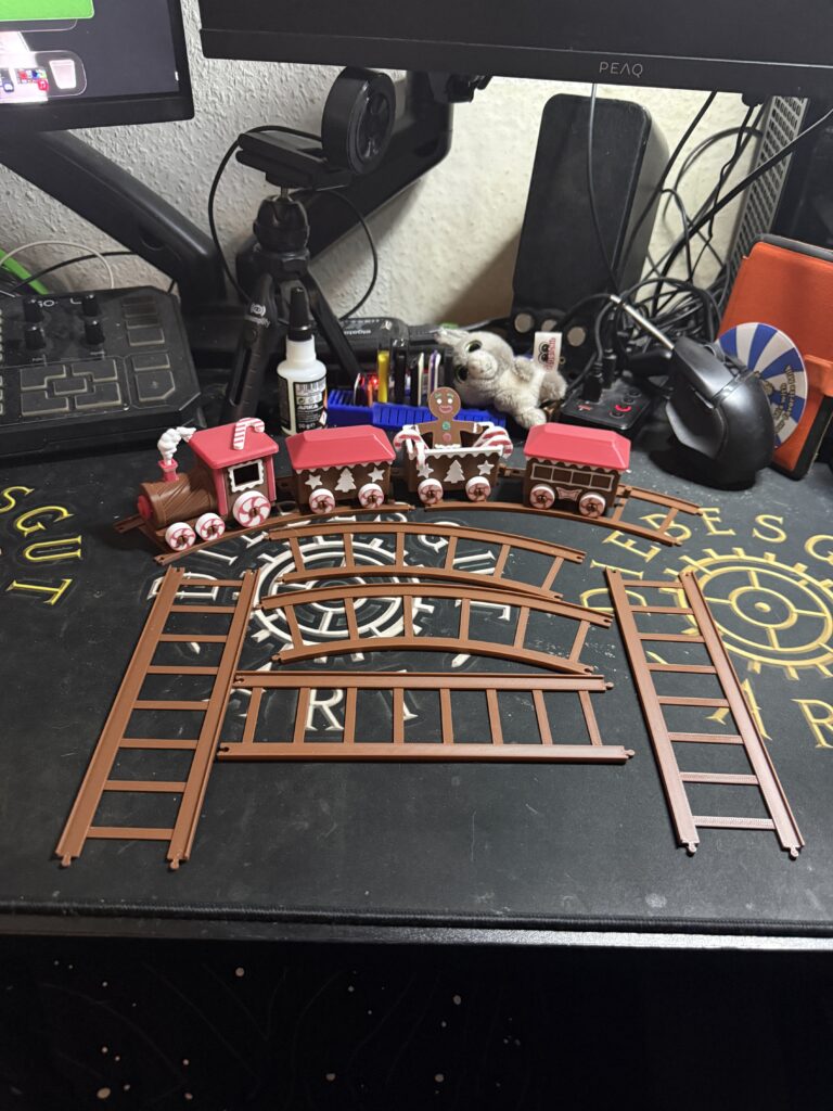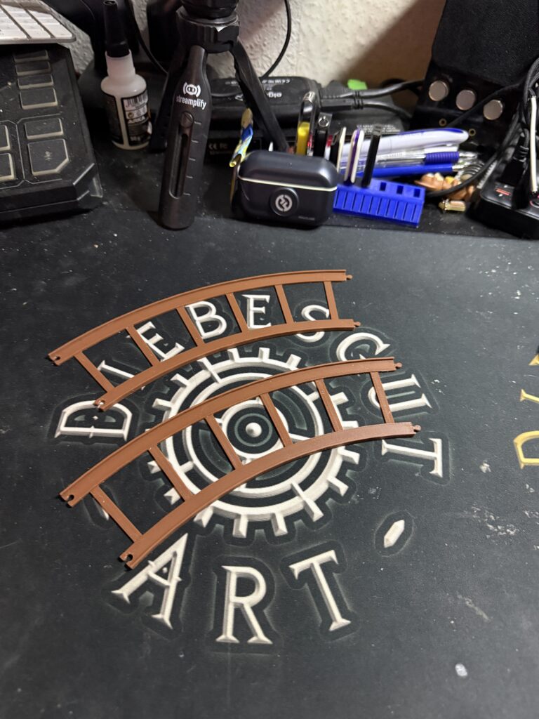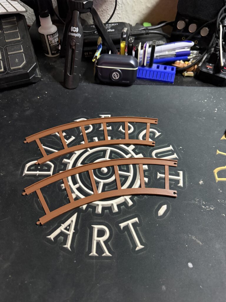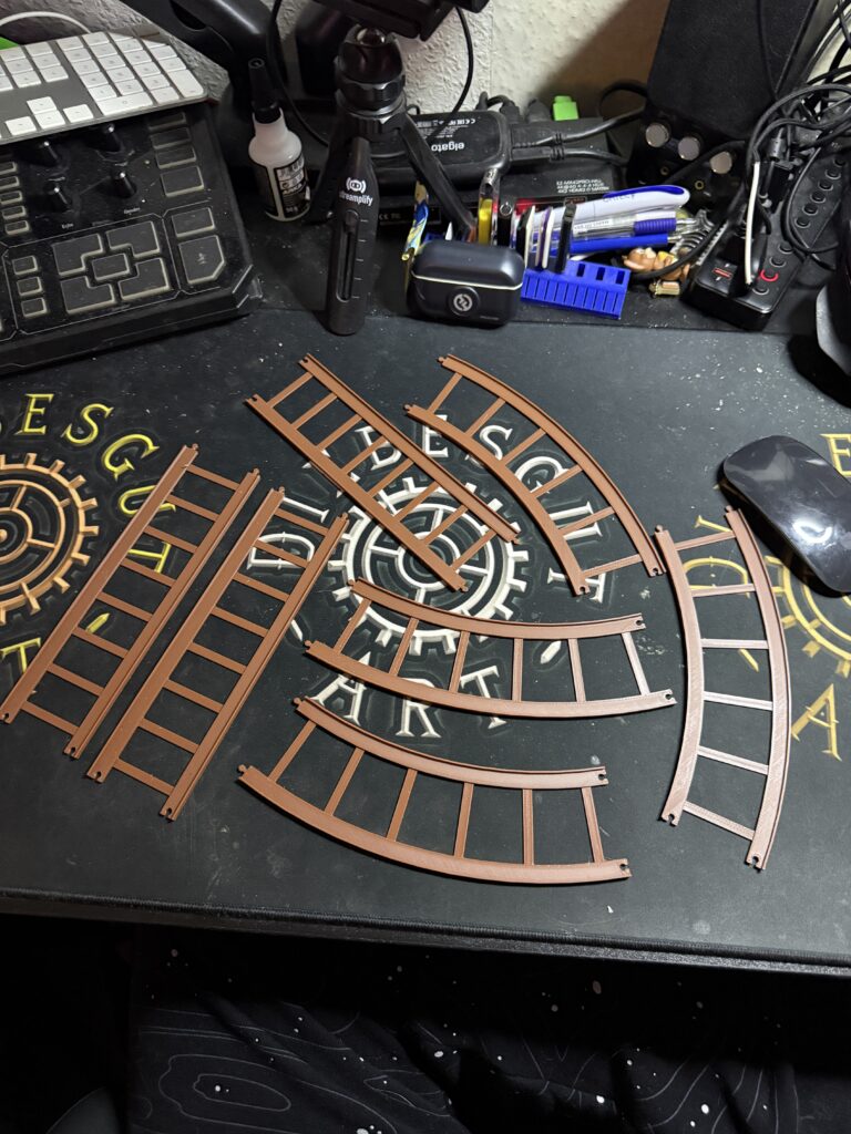 Als erstes habe ich die Schienen gedruckt diese waren einmal drei gerade und jeweils zwei Kurven in entgegengesetzte Richtung was man aber nur an den Verzahnungen sieht.