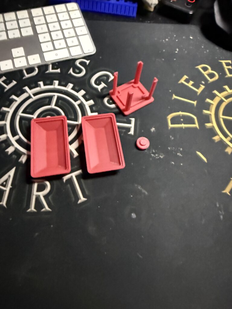 So konnte ich die Druckzeit etwas reduzieren was die Echtzeit angeht. Natürlich habe ich weiterhin 14 Stunden gedruckt jedoch auf zwei Drucker verteilt kann man bei passenden Druckmotiven die Zeit optimal nutzen und im besten fall so auf sieben Stunden reduzieren. Sprich man hat zwar weiterhin 14 Stunden Druckzeit durch die Aufteilung braucht man aber nur sieben da ja beide Drucker zur selben Zeit die entsprechenden Stunden absolvieren. Dies war in diesem Projekt nicht ganz möglich was ich jedoch später noch aufschlüsseln werde.