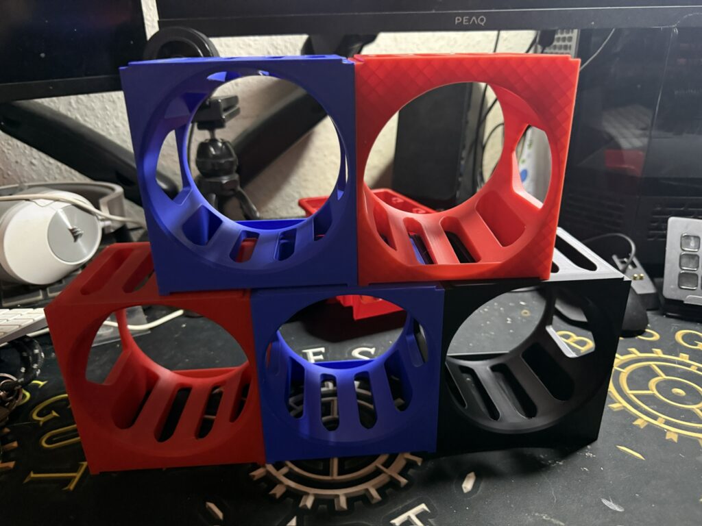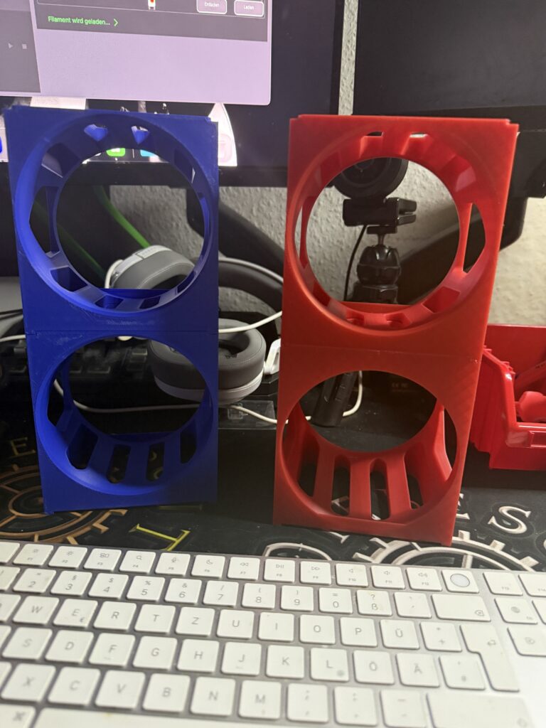 Bereits sechs der Quader hatte ich damals gedruckt zwei in Blau und 4 in Schwarz. Dies mal werden es dann nochmal zwei in Blau und zwei in Rot und einen in Schwarz weil das Rot leider nur noch für zwei Drucke reicht und ich für 125 Gramm dann nicht direkt ne neue Spule kaufen will, zumal wir hier den Hersteller wechseln werden.