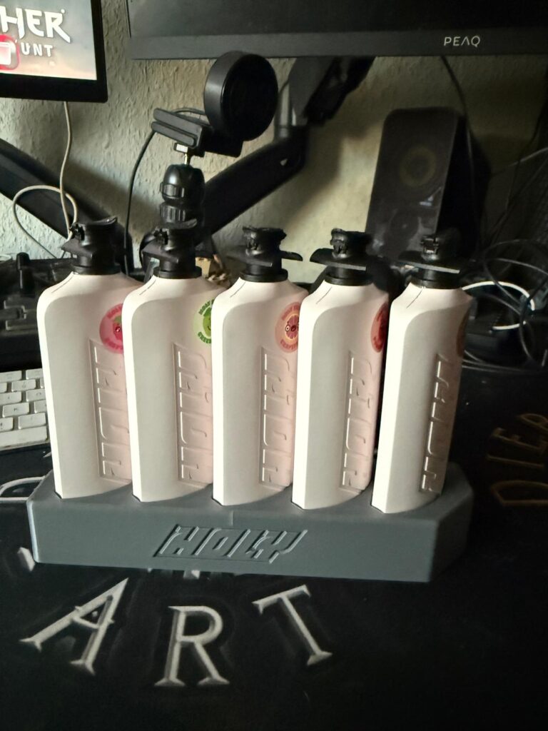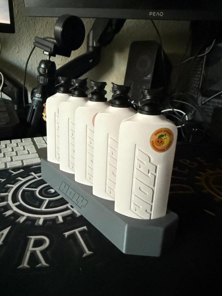 Wie ja einige mit bekommen haben hat die Firma Holy Energy Sirup mit passender Falsche am 19.4.26 heraus gebracht. Wir (meine Frau und ich) trinken schon lange Holy denn ab und zu soll doch etwas GEschmack im Wasser sein und so hab ich es auch geschafft von normalen Softdrinks weg zu kommen. Mein Holy Regal habe ich ja hier bereits gezeigt. Wie das Regal ist auch dieser Druck wieder auf Makerworld gefunden worden.