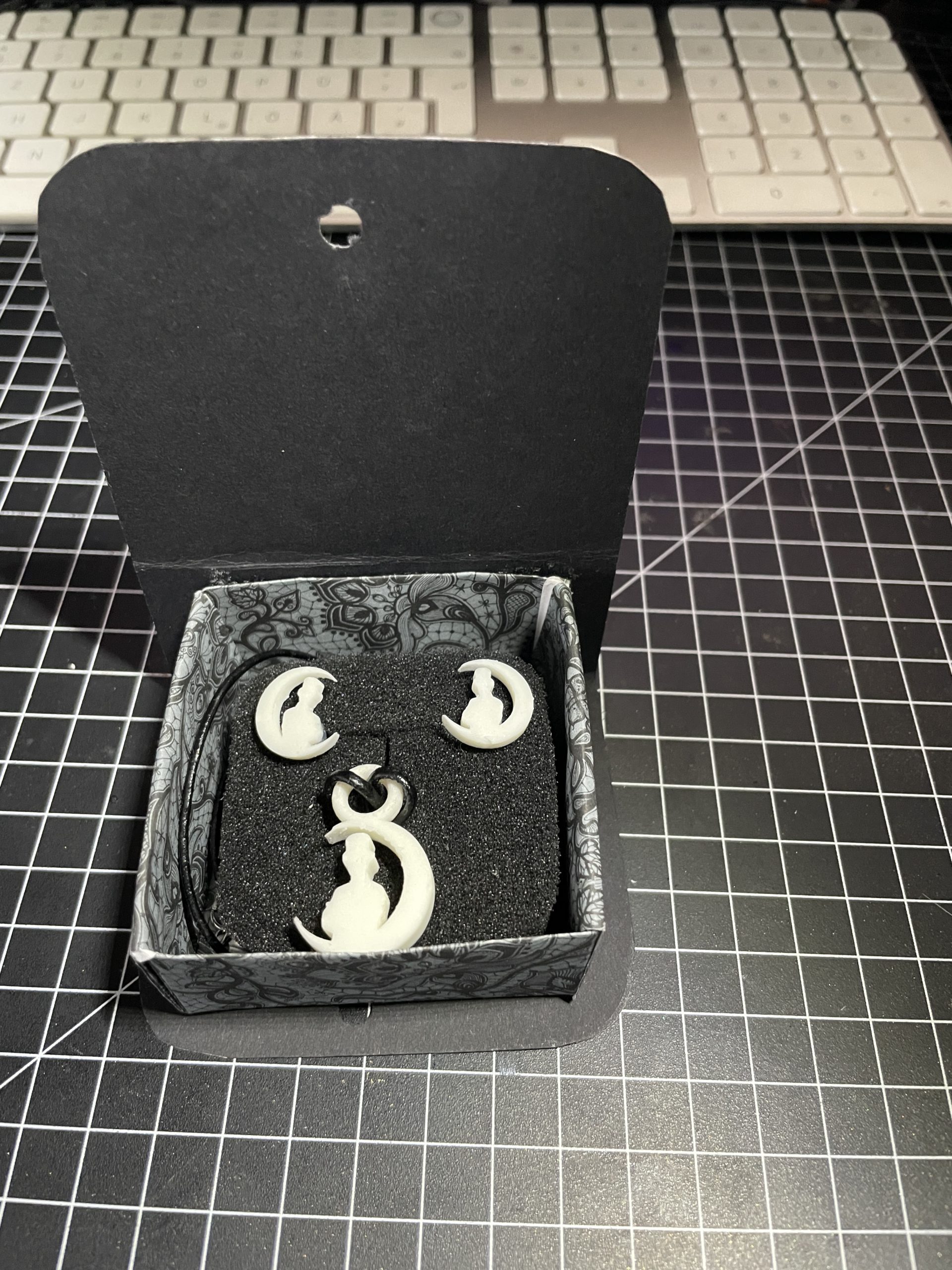 Hi Leute, gestern haben wir das erste Set fertiggestellt. Aktuell muss ich noch 3 Anhänger in grau und mindestens 5 in weiß, wie auch dann die passende Anzahl an Ohrringen…